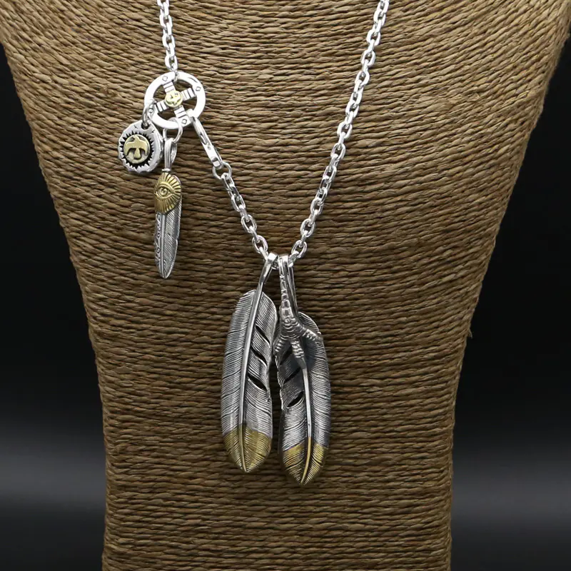 Silver Pendant Necklace Feather Talon Vintage Style 282