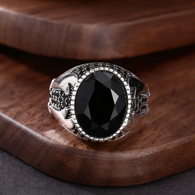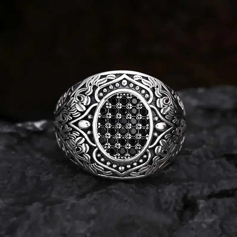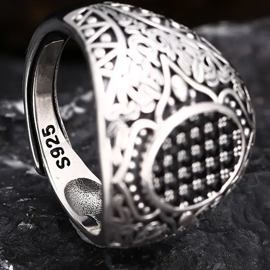 Silver Adjustable Ring With Black Stone 40