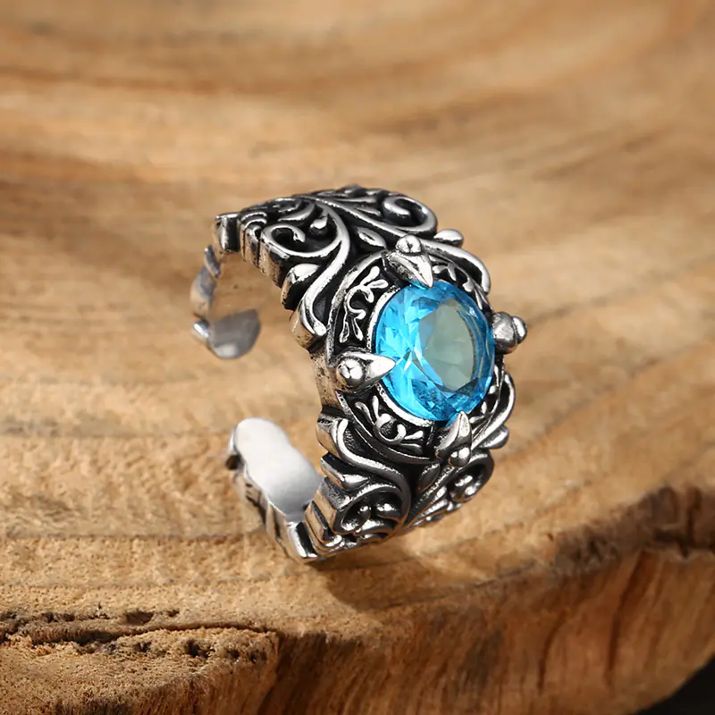 Silver Adjustable Scroll Rings Blue Stones Vintage Style 157