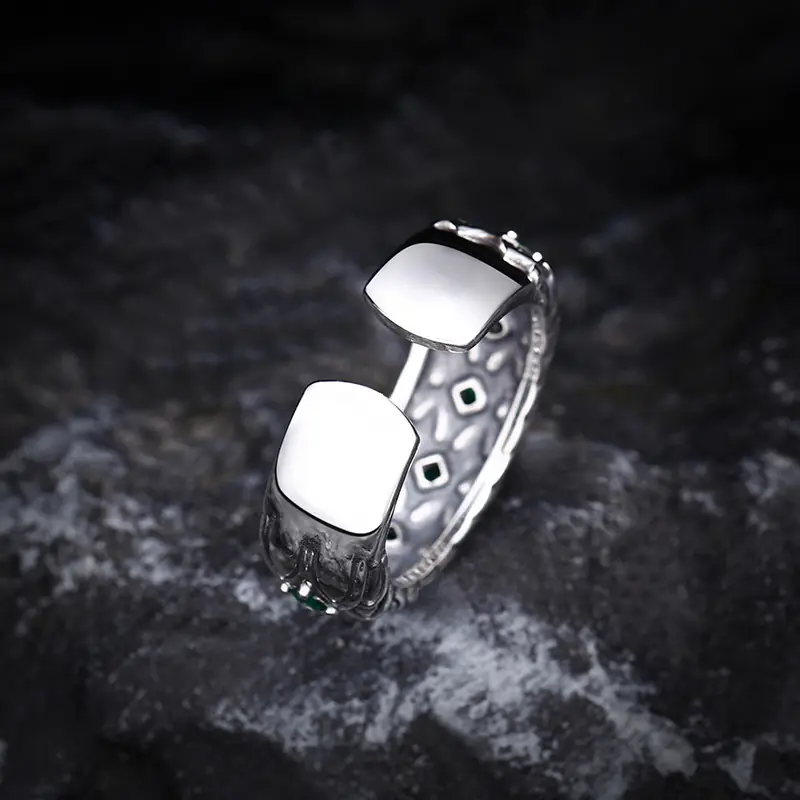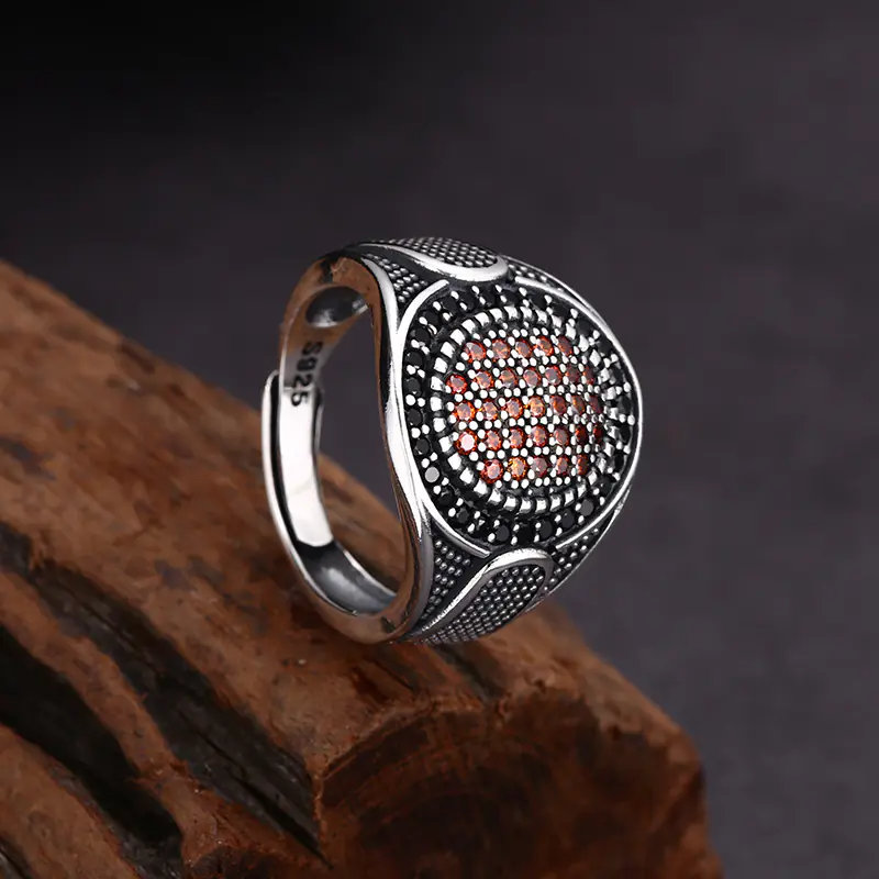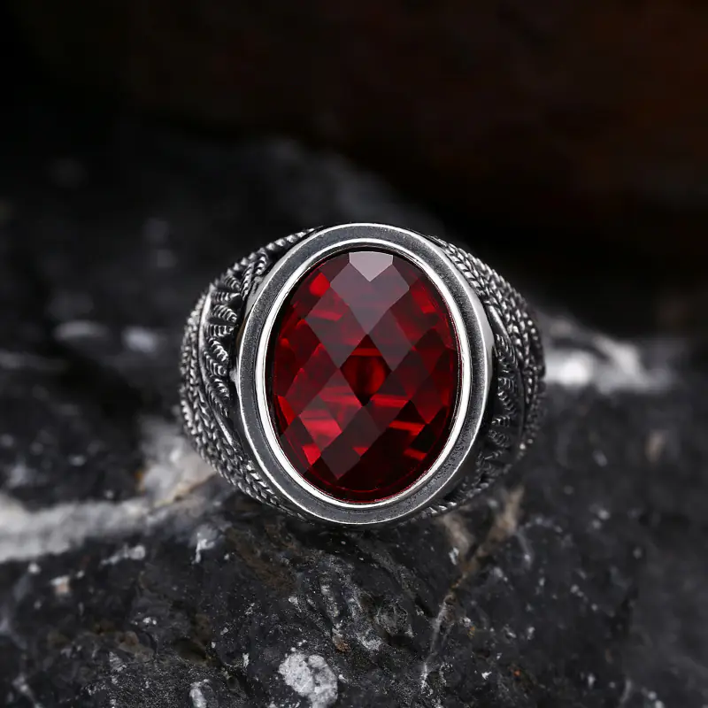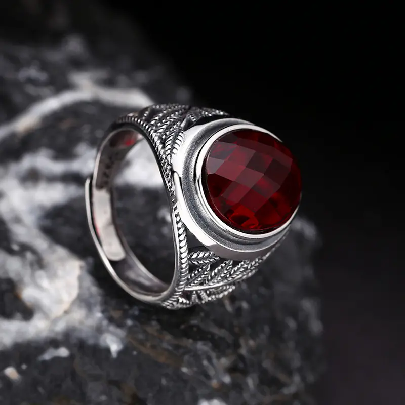 Silver Adjustable Ring Oval Red Facet Stone 123