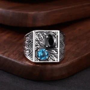 Silver Adjustable Braided Textured Ring With Black Square Stone 72