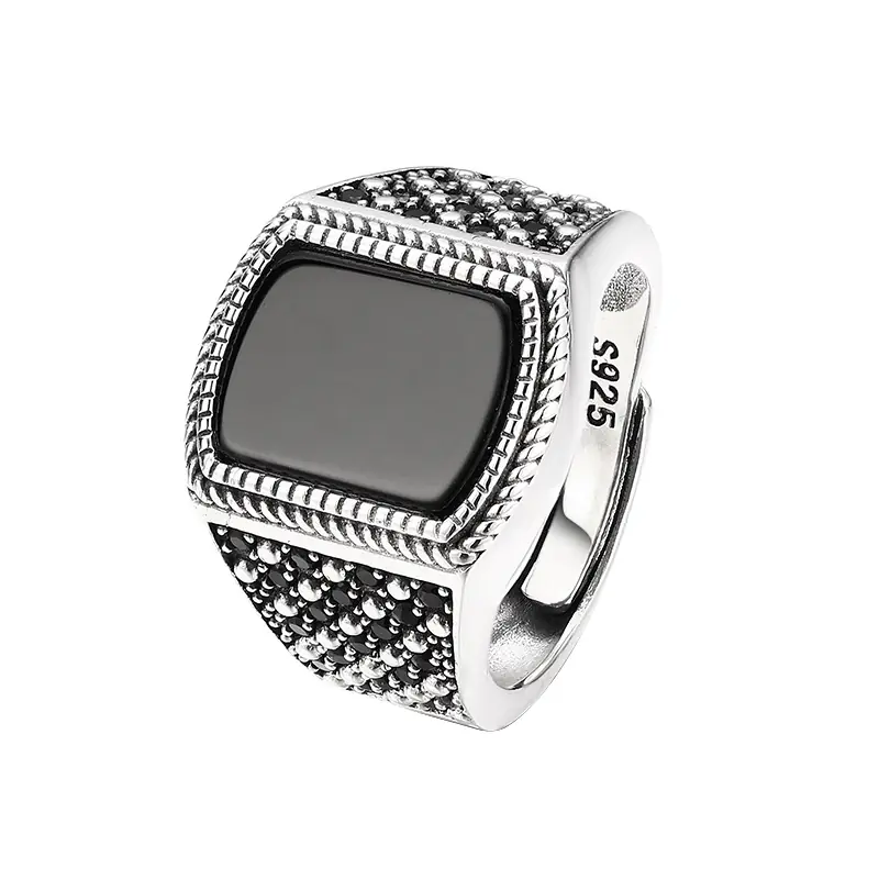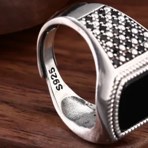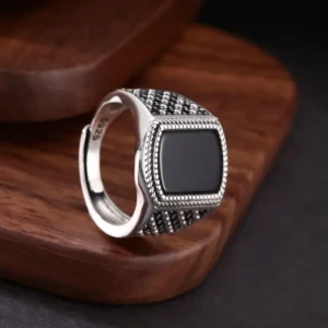 Silver Adjustable Ring Black Agate 121