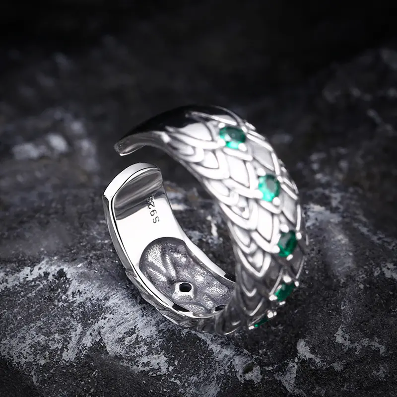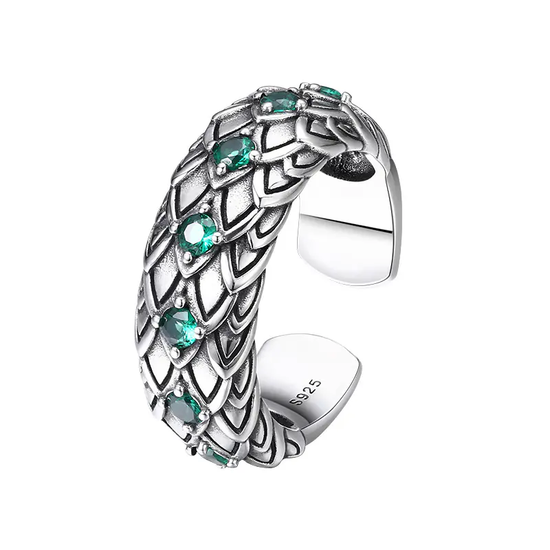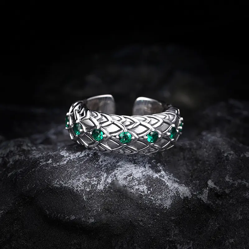 Silver Adjustable Ring Fish Scale Textures 128