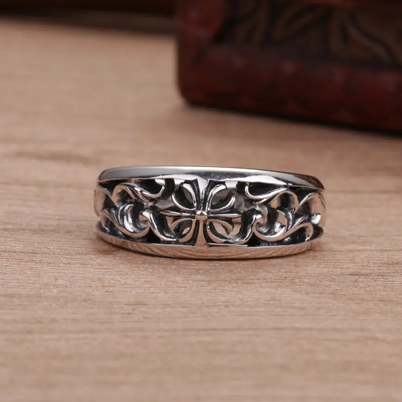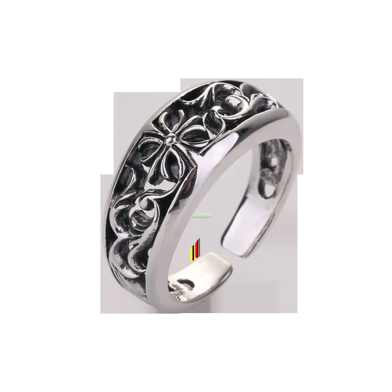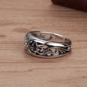 Silver adjustable ring hollowed scroll cross 34