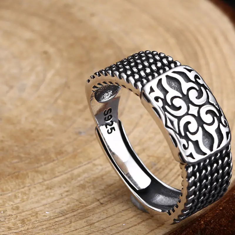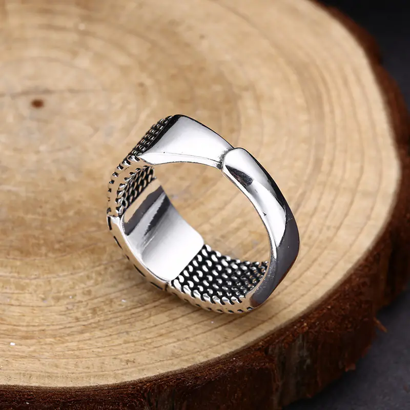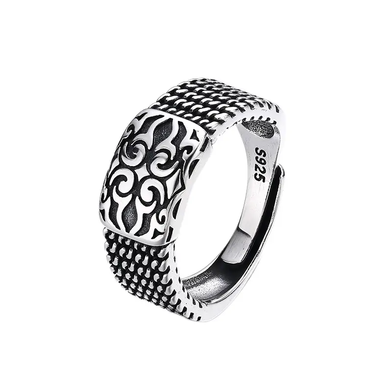 Silver Adjustable Ring Scroll Texture Vintage Style 83