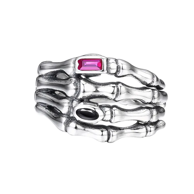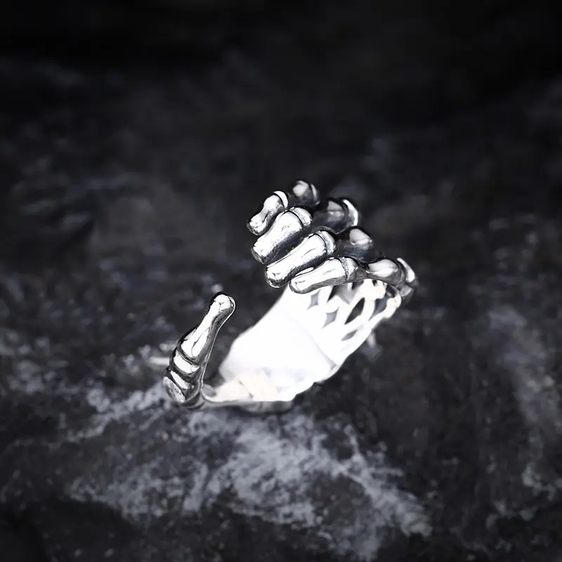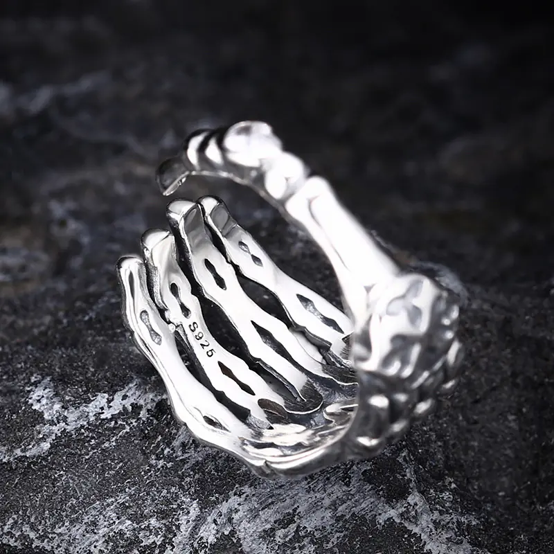 Silver adjustable ring skeleton hand 33