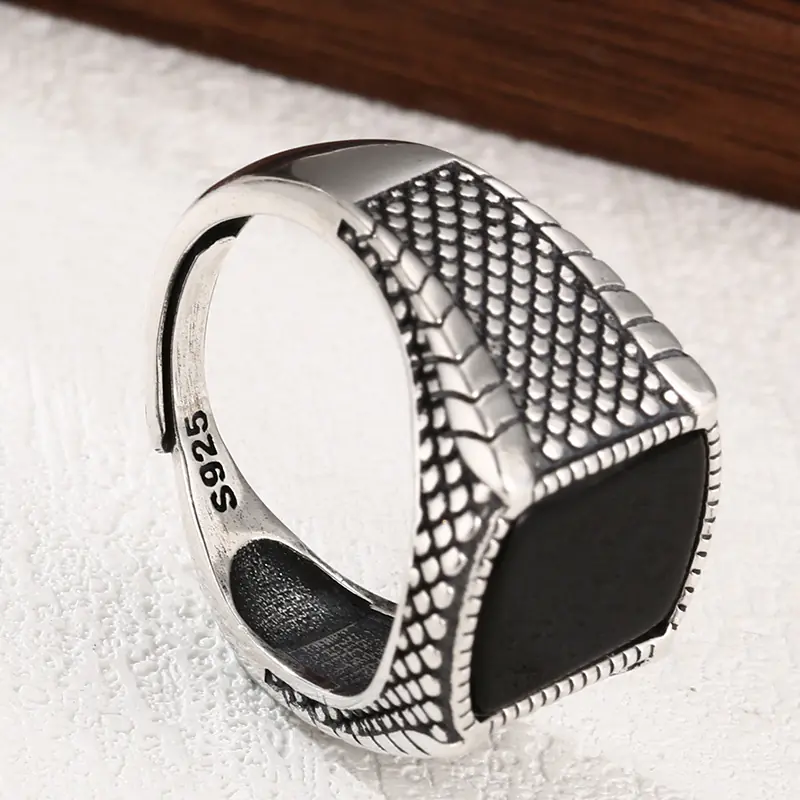 Be the first to review “Silver adjustable ring with Black agate 31”