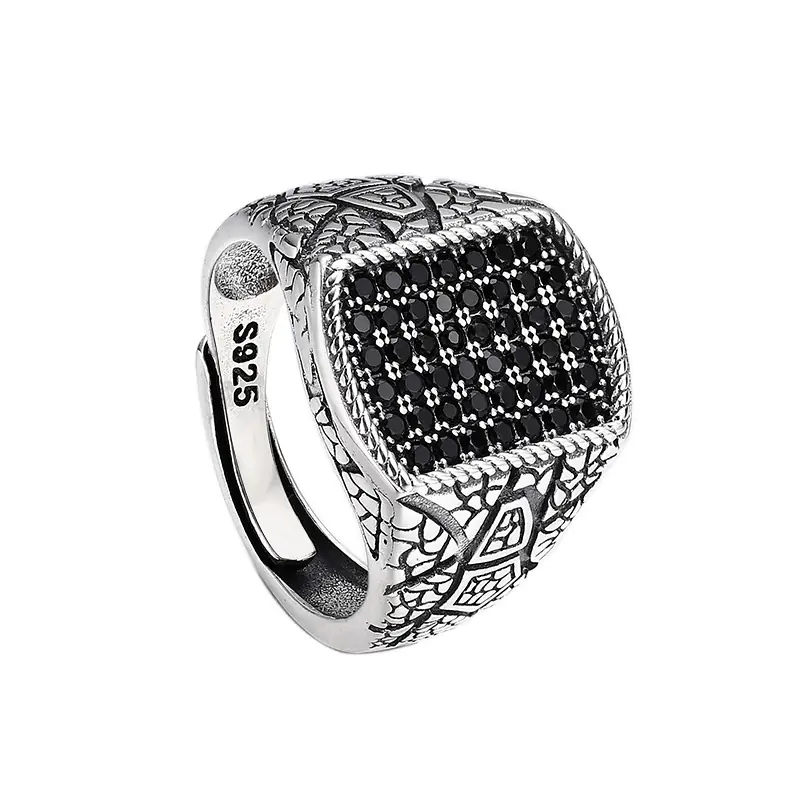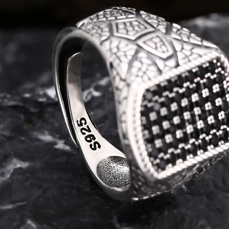 Silver Adjustable Ring With Black Paved Stones 77
