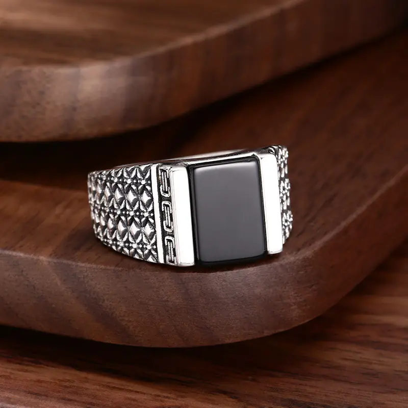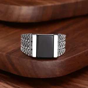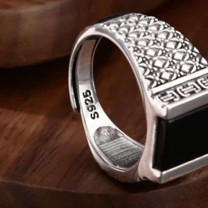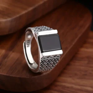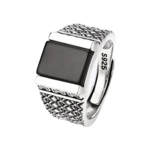 Silver Adjustable Ring With Black Stone 44