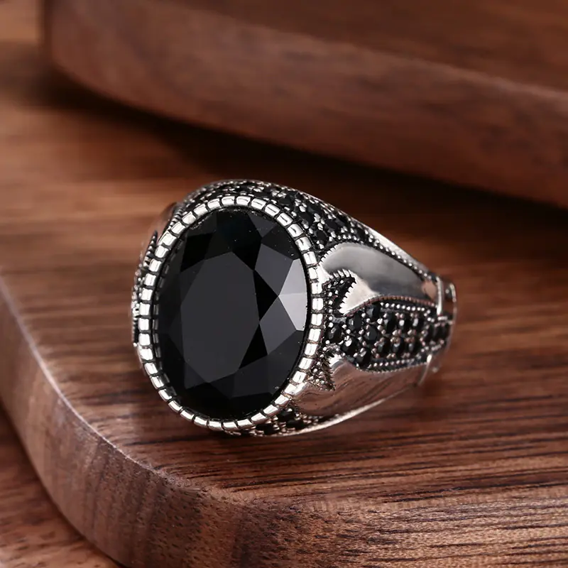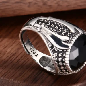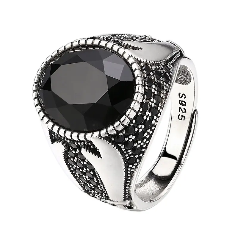 Silver Adjustable Ring With Oval Black Stone 46
