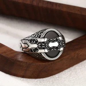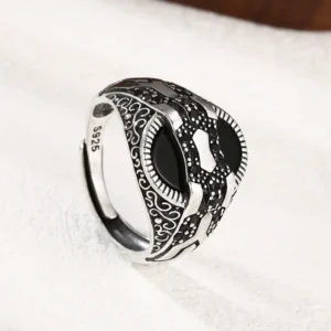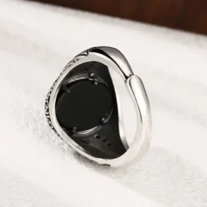 Silver Adjustable Scroll Ring With Black Stones 59