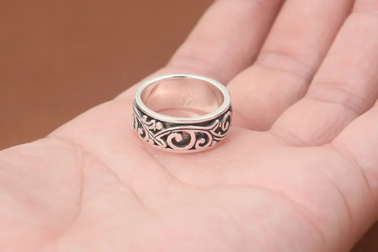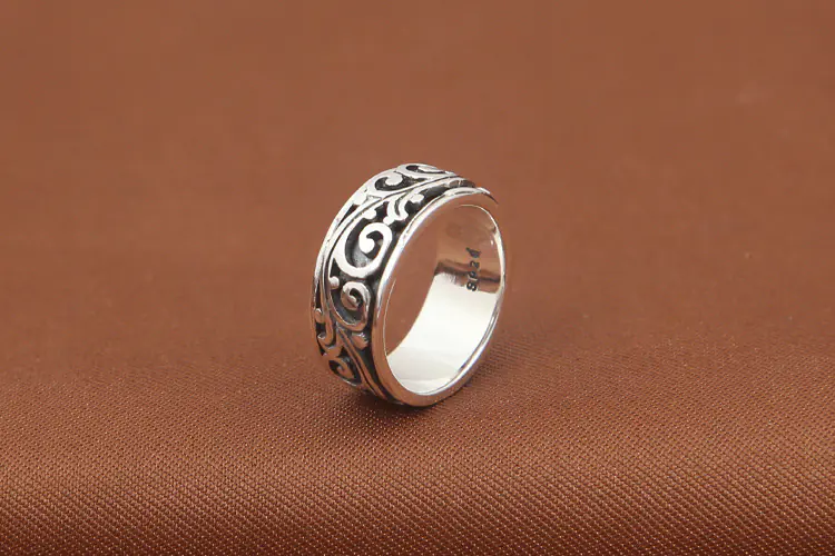 Silver Band Ring Scroll Rotatable 111