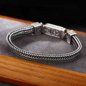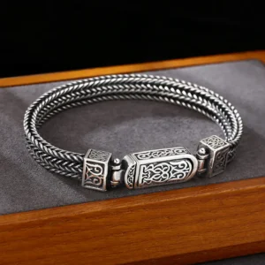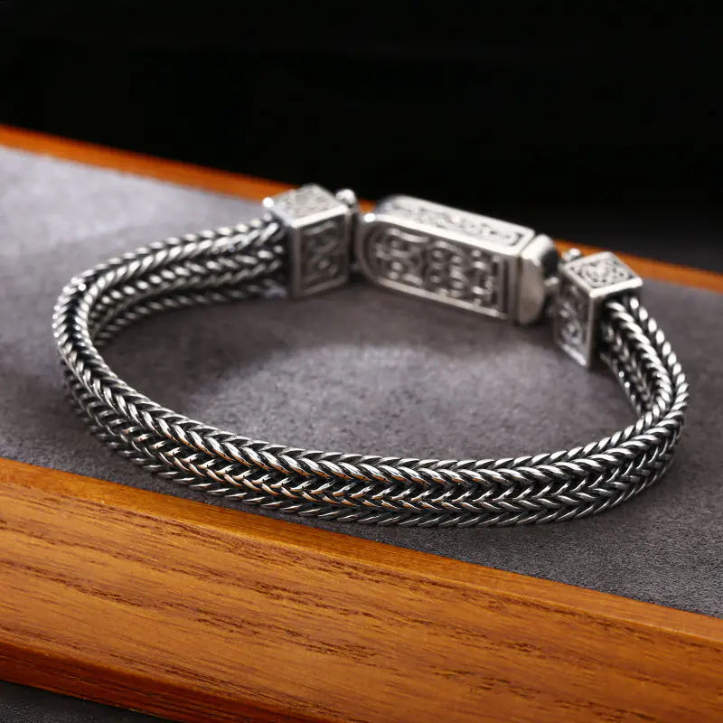 Silver Bracelets Braided Link Chain Scroll Vintage Style 198