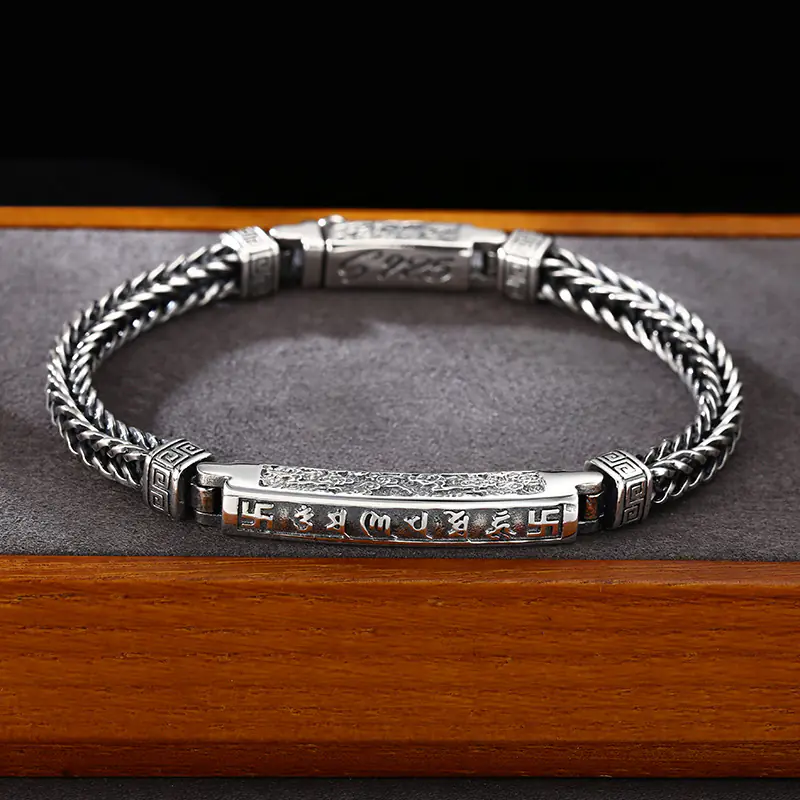 Silver Bracelets Braided Link Chain Vintage Style 204