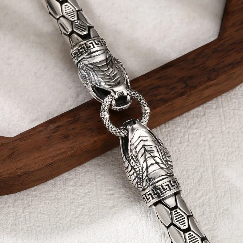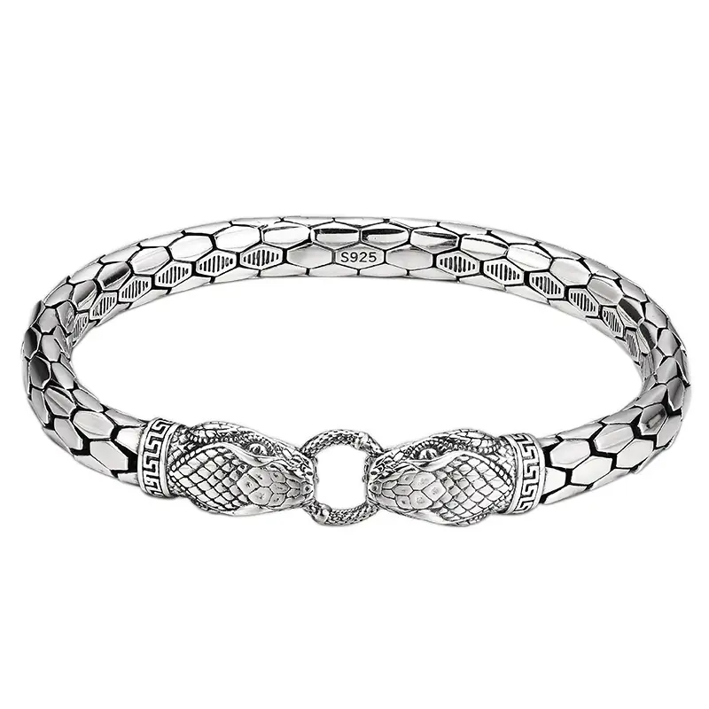 Silver Bracelets Snake Textures Heads Vintage Style 190