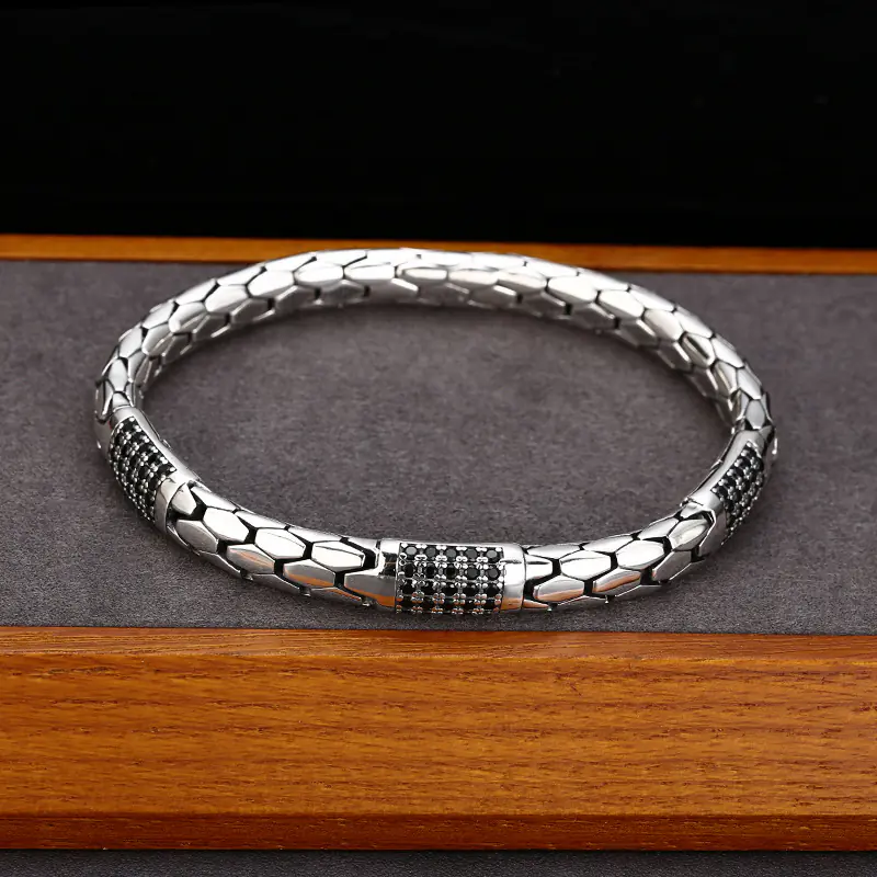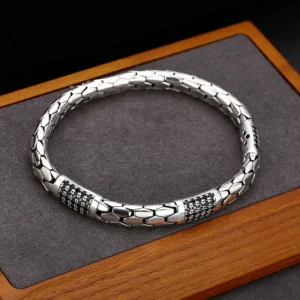 Silver Bracelets Snake Textures Vintage Style 188