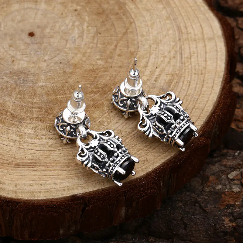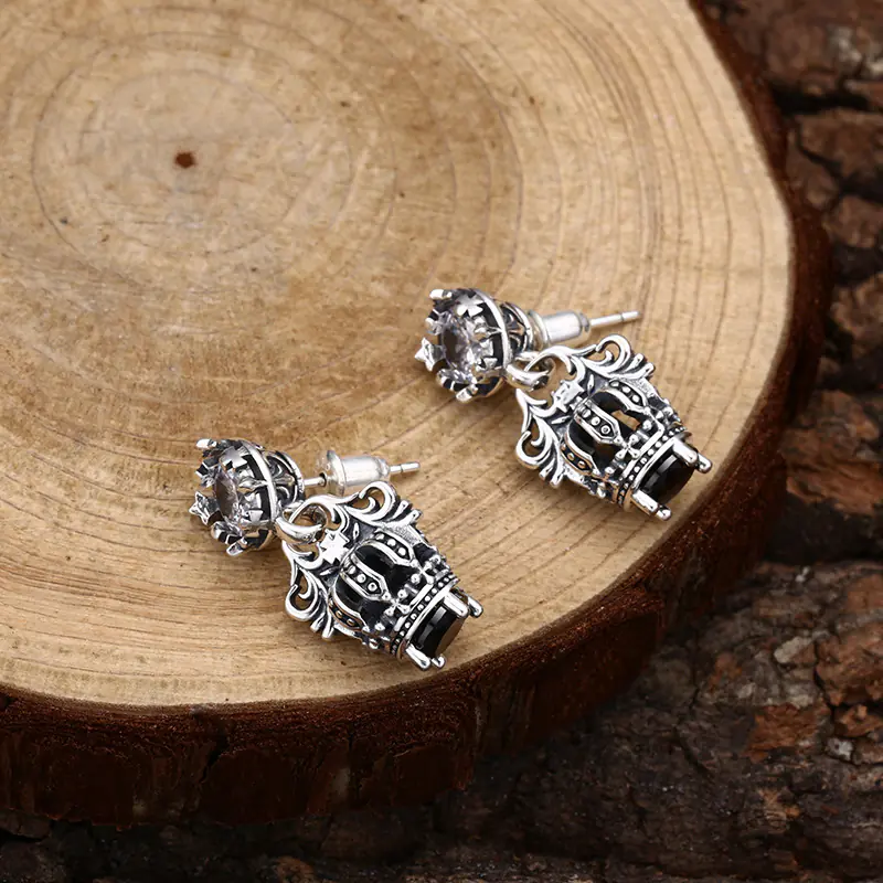 Silver Dangle Earrings Crown Spear Vintage Style 228