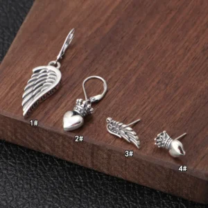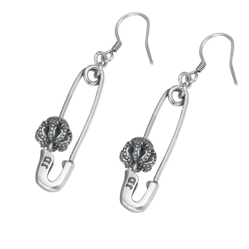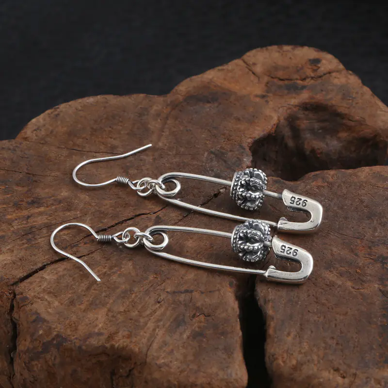 Silver Dangle Earrings Brooch Crown Vintage Style 241