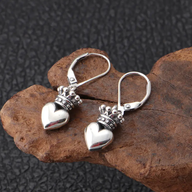 Silver Dangle Stud Earring Wings Heart Vintage Style 242