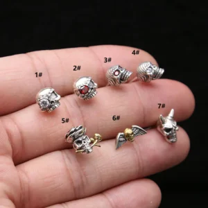 Silver Stud Earrings Skull Vintage Style 220