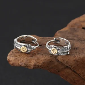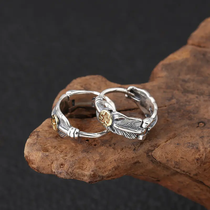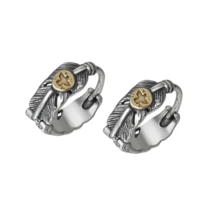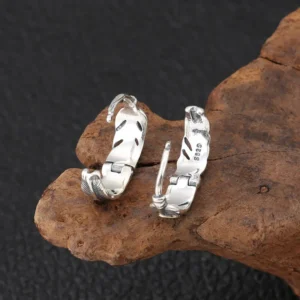 Silver Huggie Earrings Feather Vintage Style 221