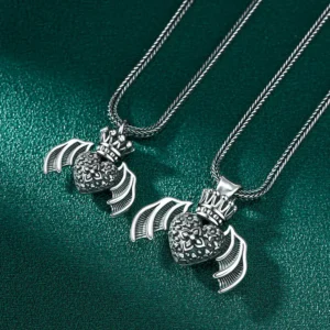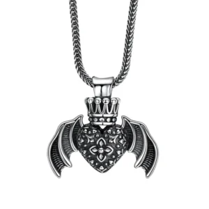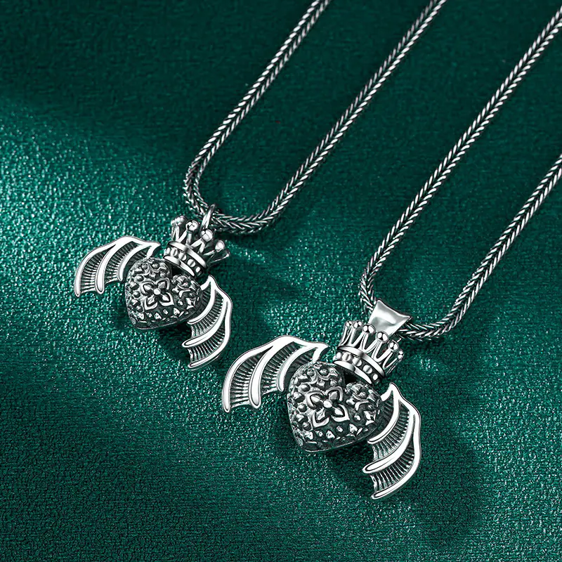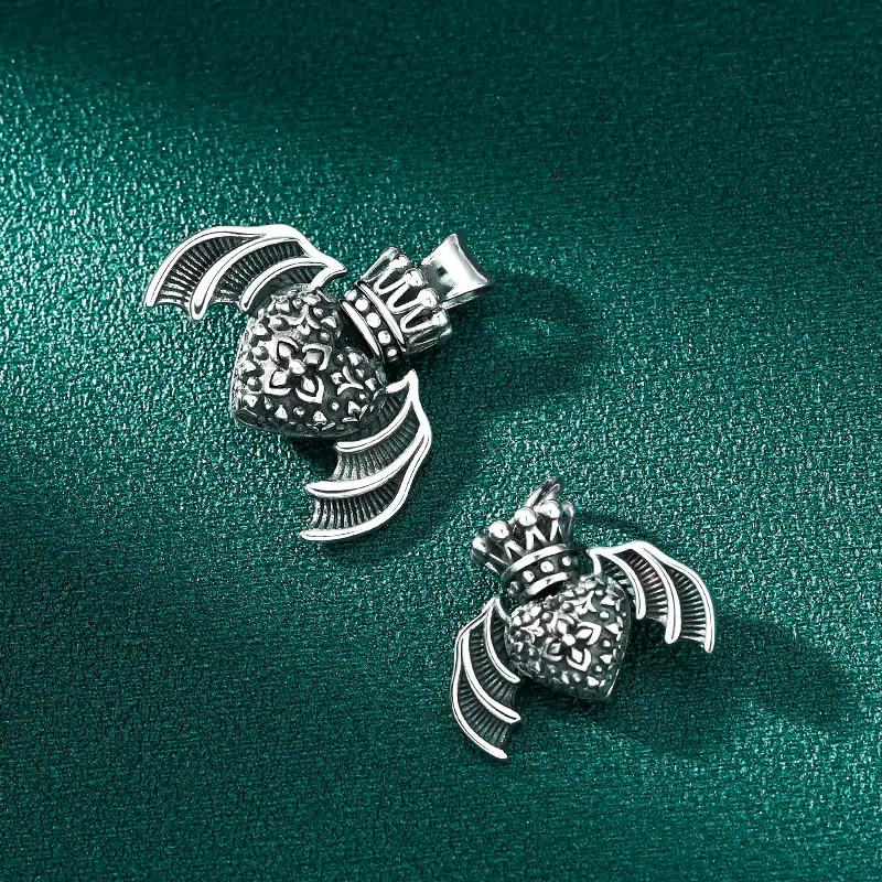 Silver Pendant Heart Wings Vintage Style 287
