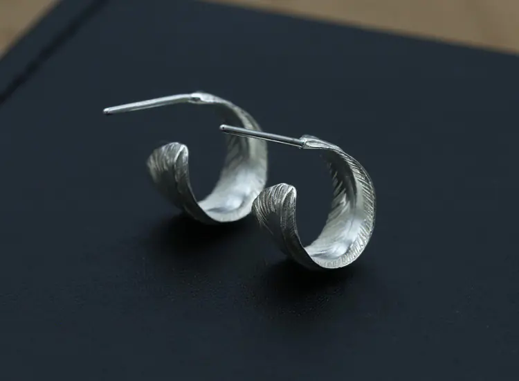 Silver Stud Earring Twisted Feather Shape Vintage Style 247