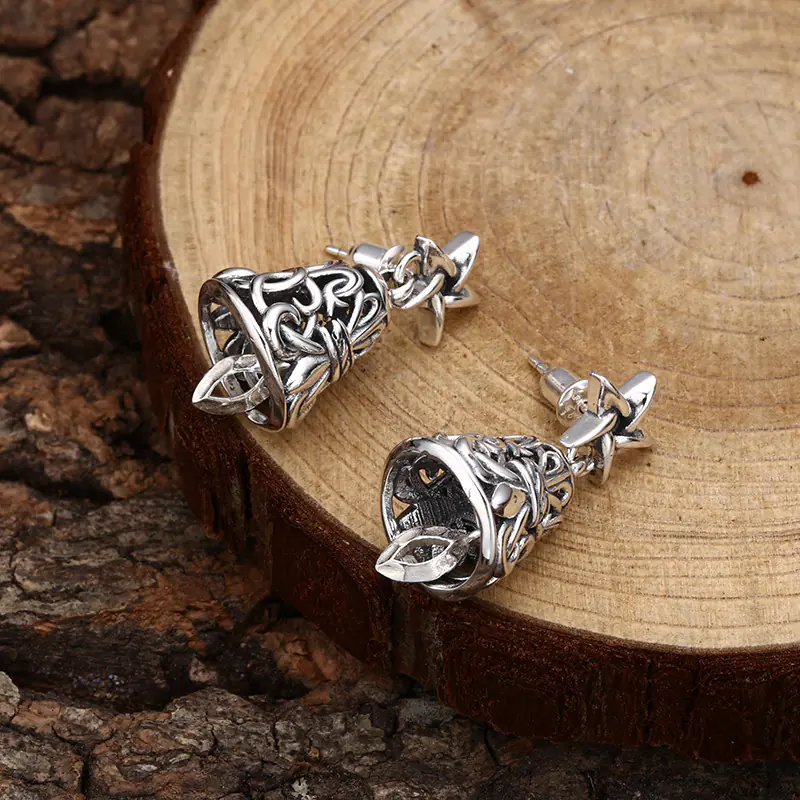 Silver Dangle Earrings Star Bell Vintage Style 231