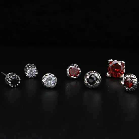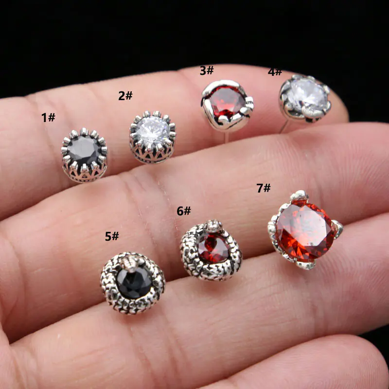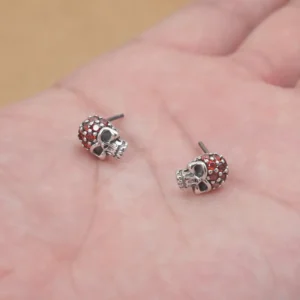 Silver Stud Earrings Skull With Stones Vintage Style 254