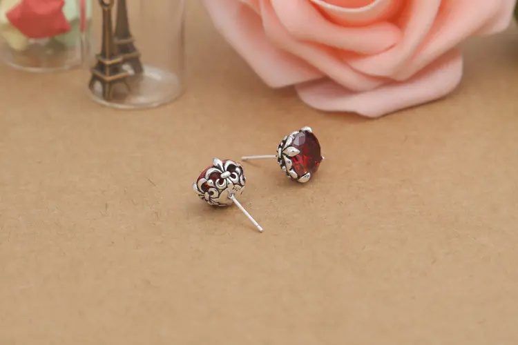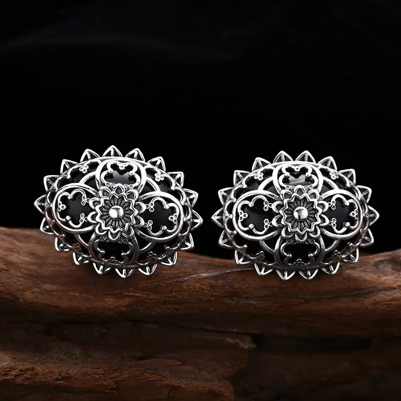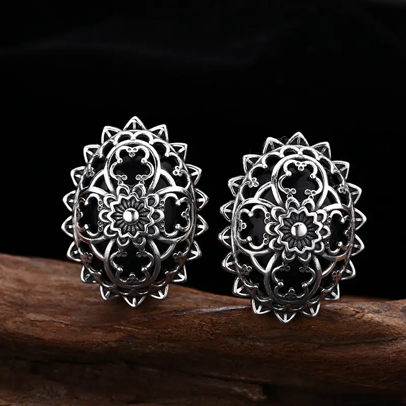 Silver Stud Earrings Hollowed Flower Vintage Style 239