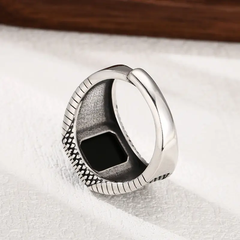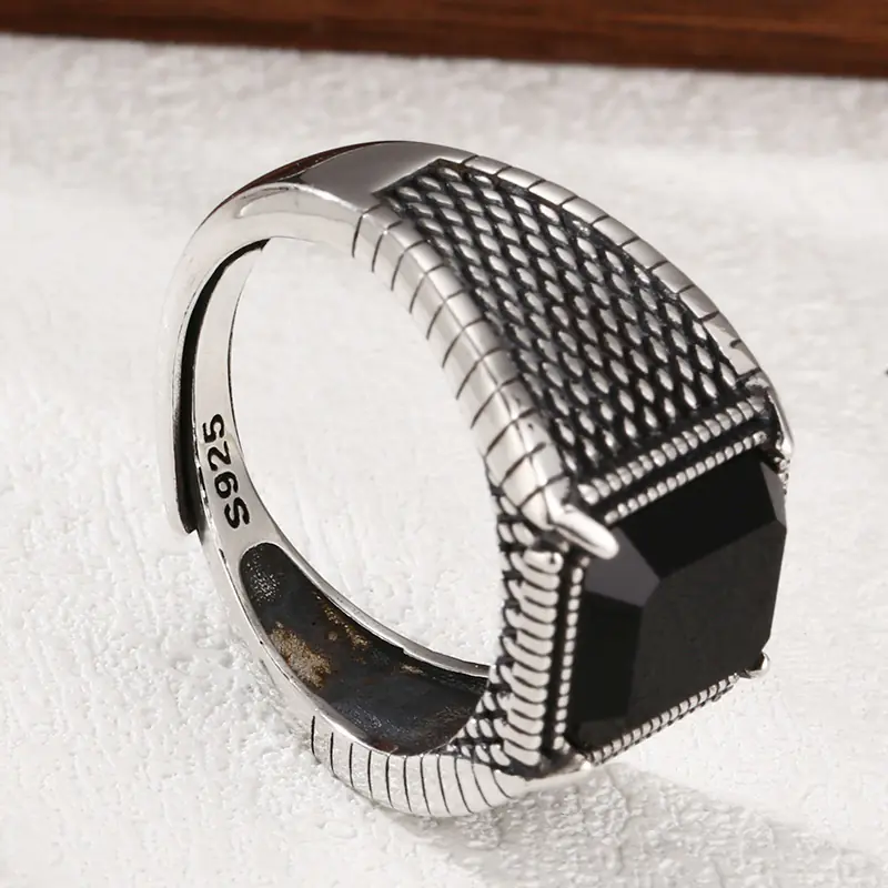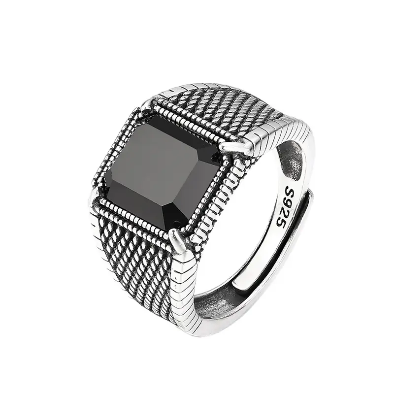 Sterling Silver Adjustable rings Black Stone 293