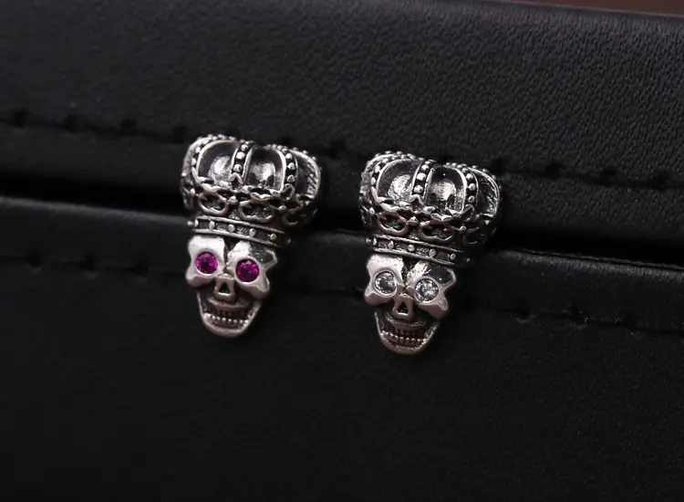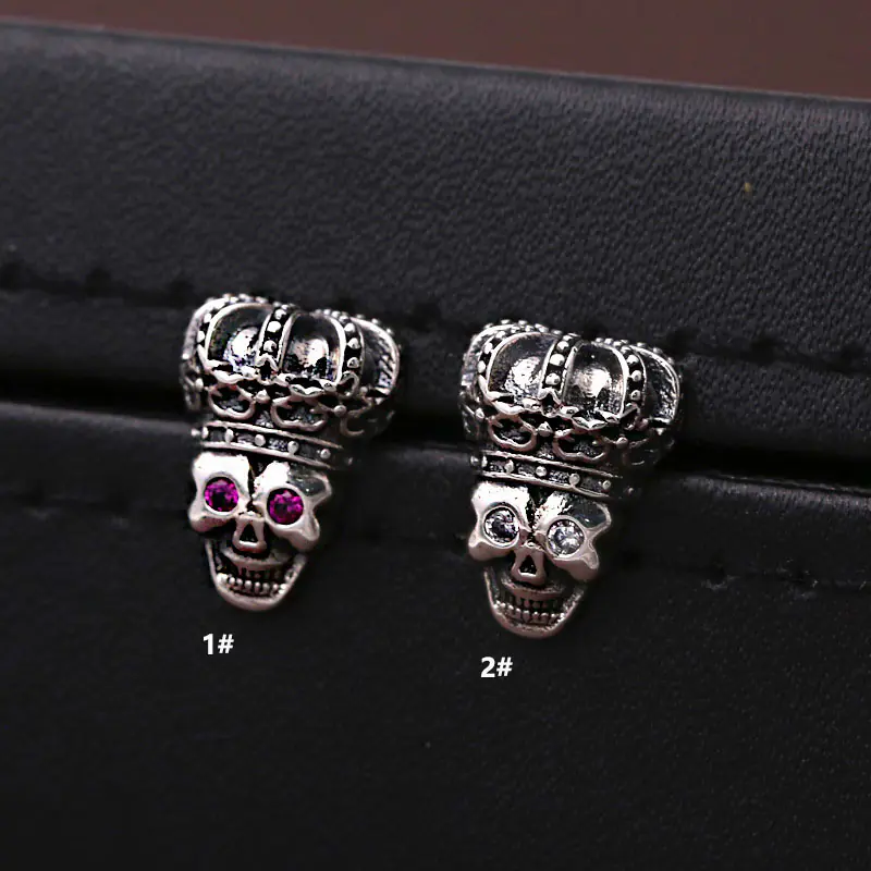 Silver Stud Earrings Skull With Crown Vintage Style 249