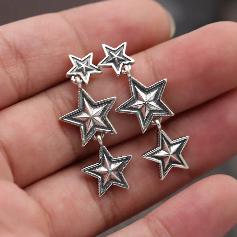 Silver Dangle Earring Skull With Feathers Vintage Style 252