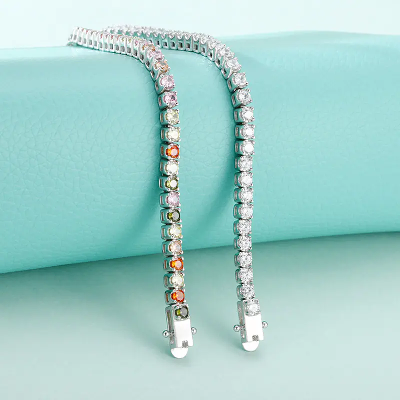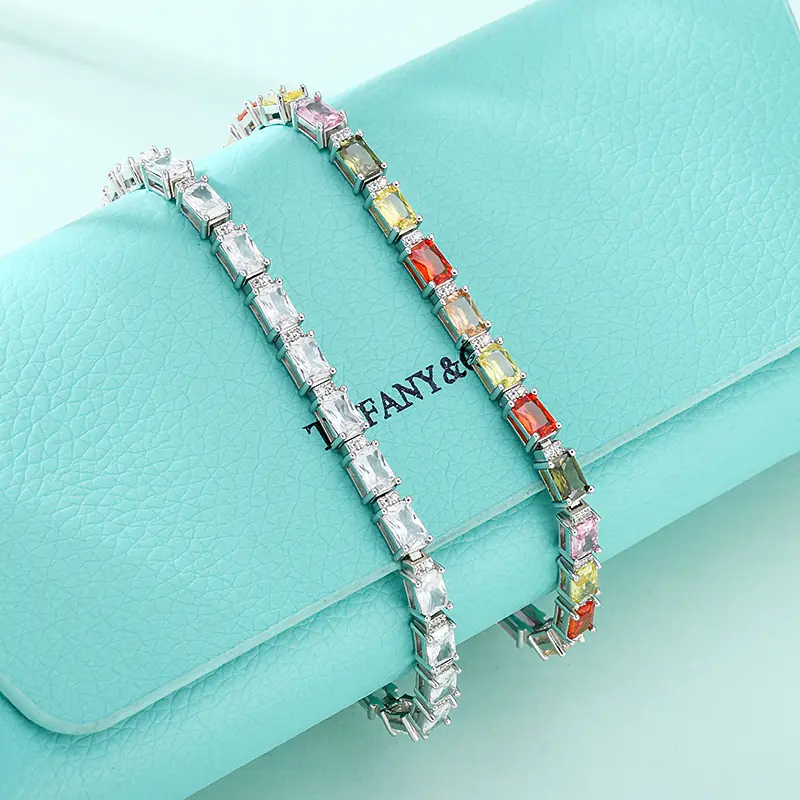 Silver Bracelets Color Stones Links For Women 211