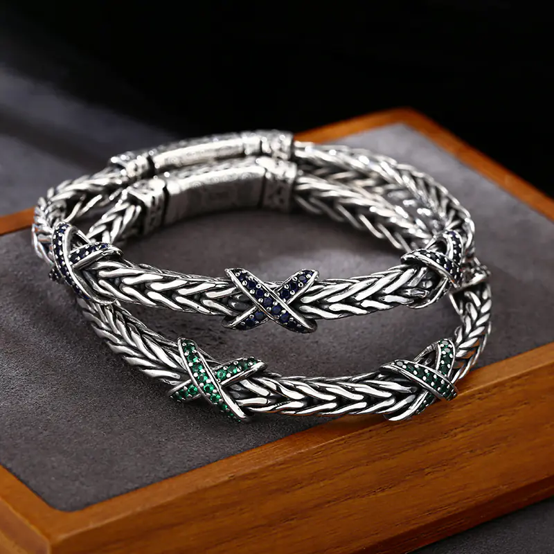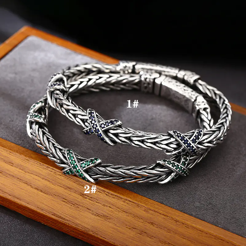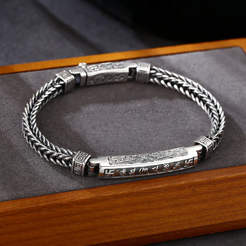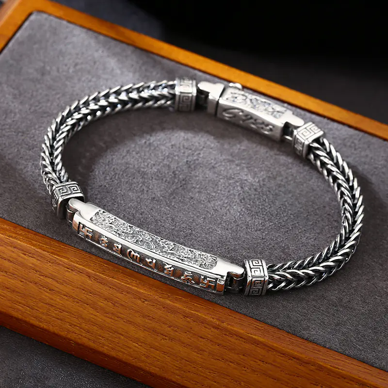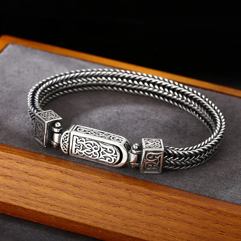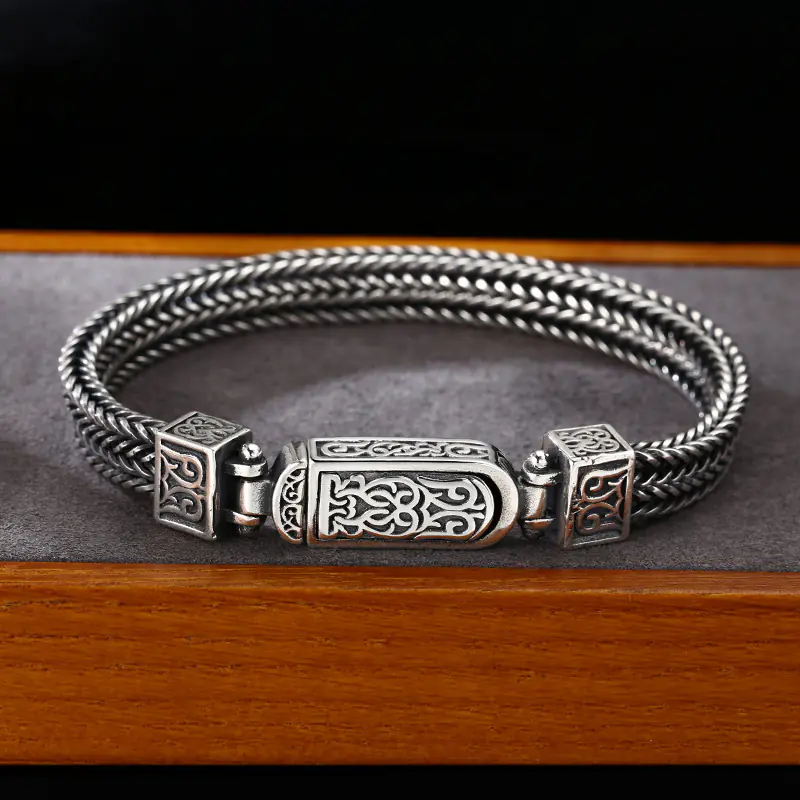 Silver Bracelets Foxtail Braided Link Chain Scroll Vintage Style 200