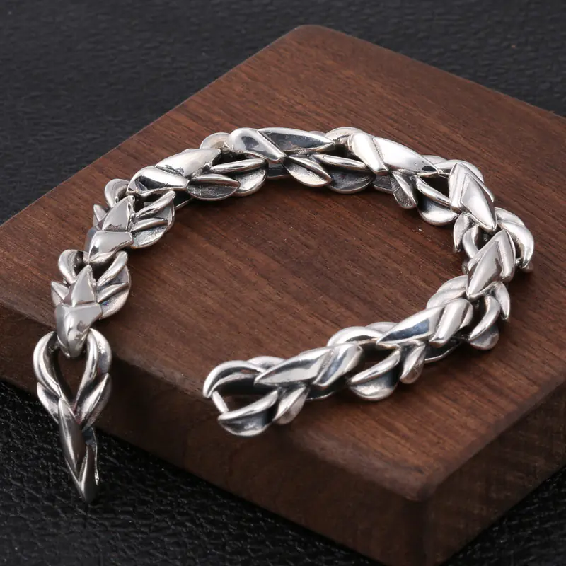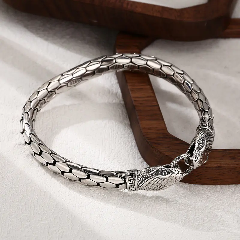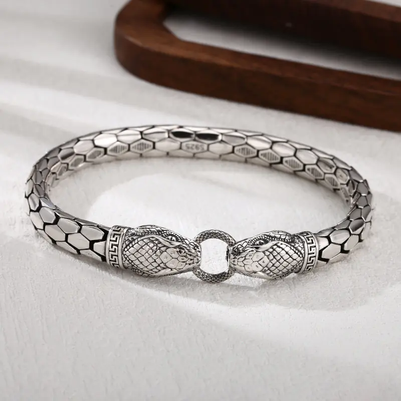Silver Bracelets Snake Textures Heads Vintage Style 190