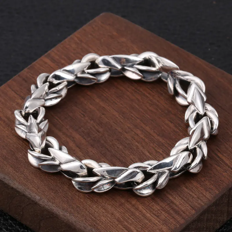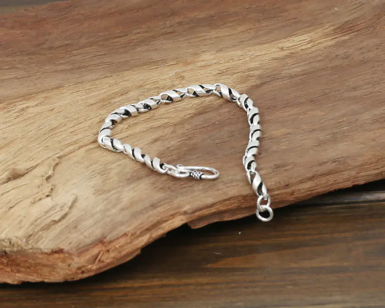 Silver Bracelets Twisted Link Chain Bracelet Vintage Style 196