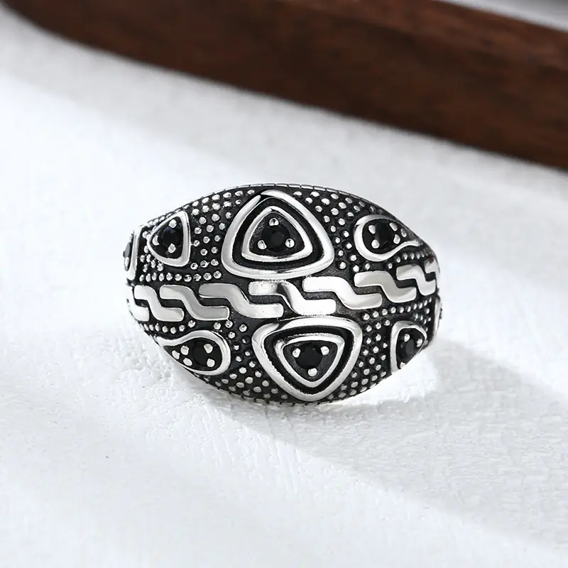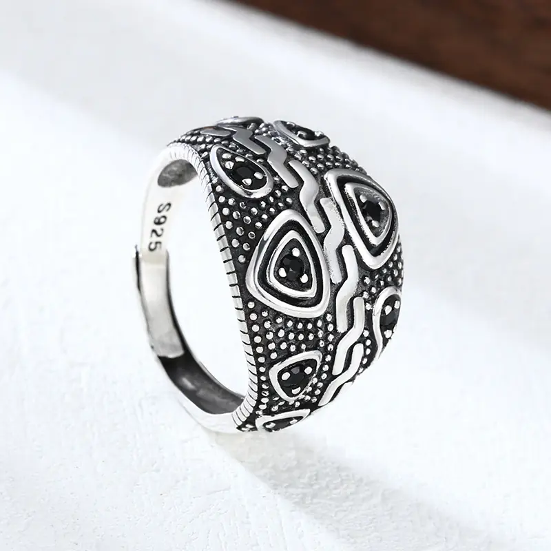Silver Adjustable Ring With Black Stones 68