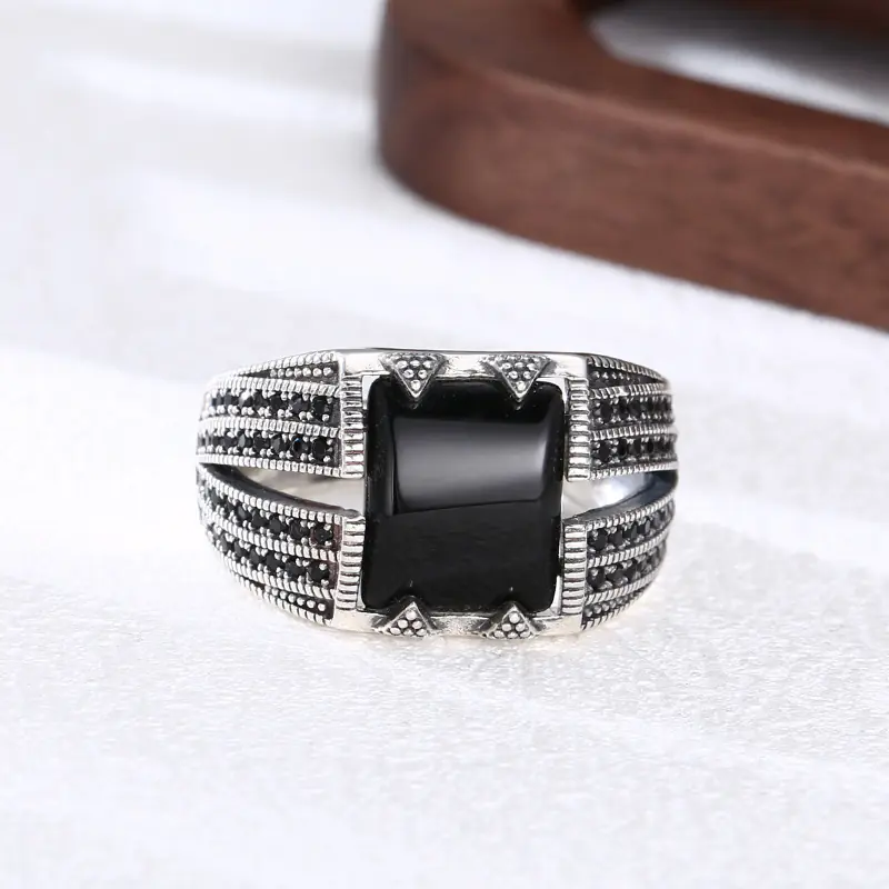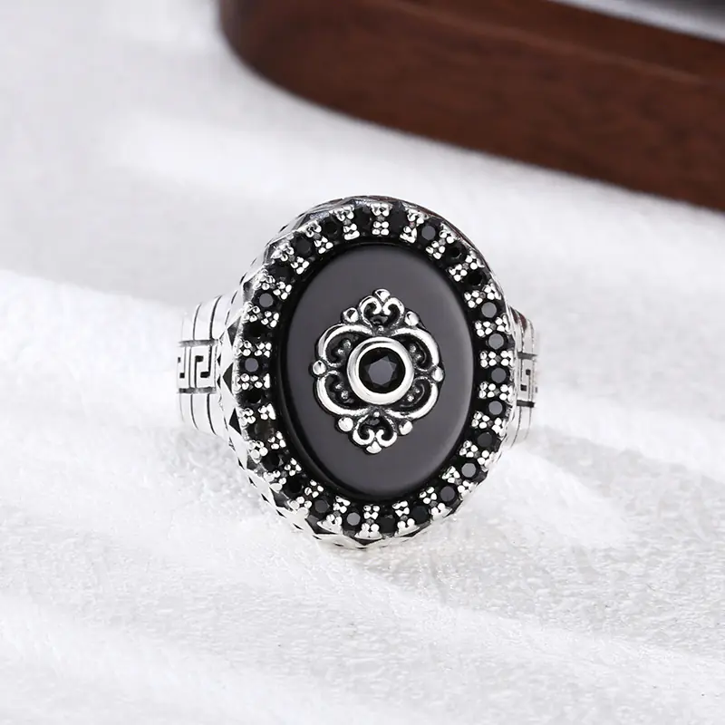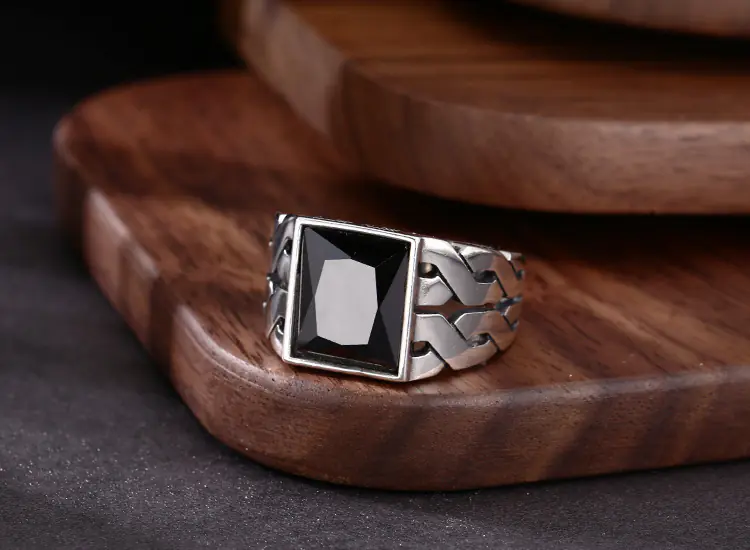 Silver Adjustable Ring With Black Stone 67
