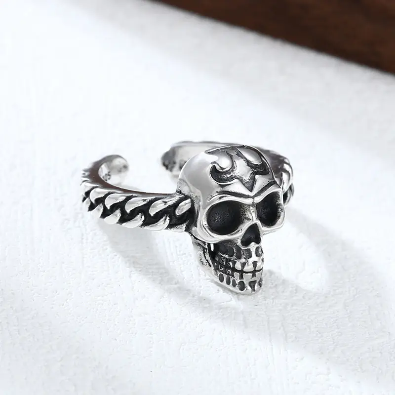 Silver Adjustable Skull Ring 62