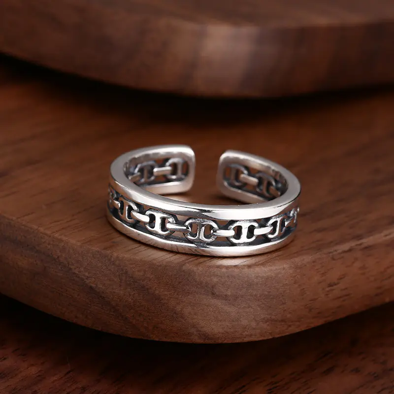 Silver Adjustable Textured Ring 66