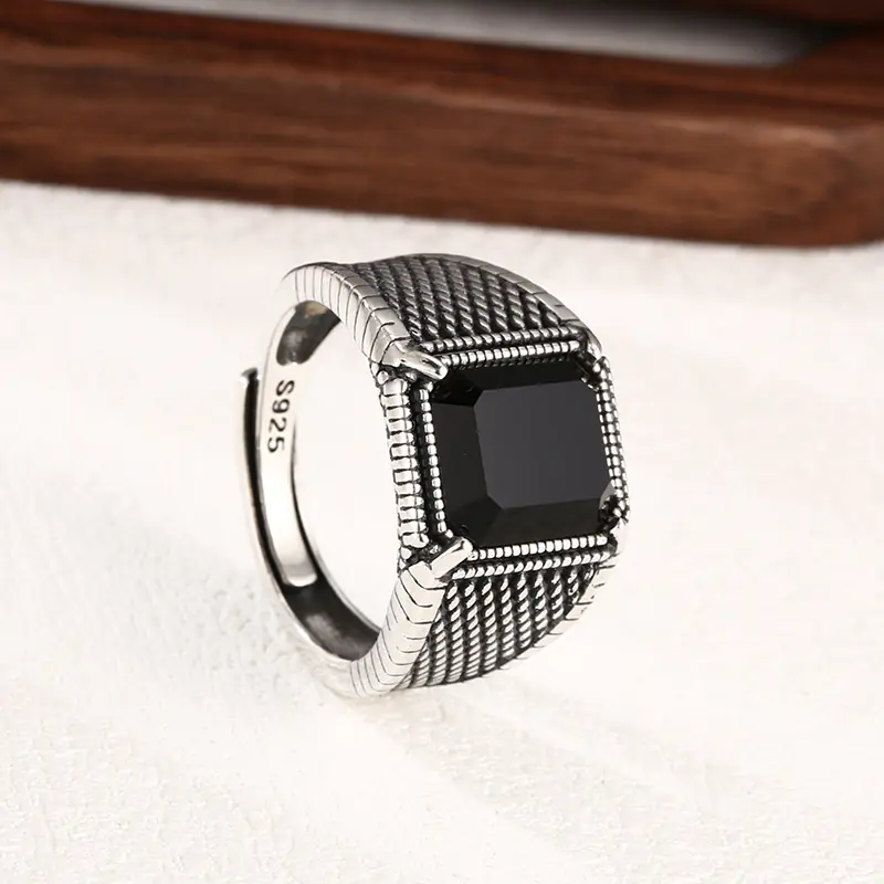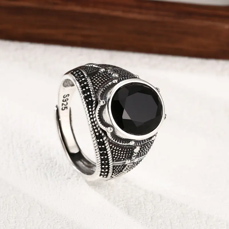 Sterling Silver Adjustable Rings Sword Black Stone 292